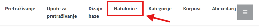 U polje rječničkog oblika riječi (natuknice) upisuje se rječnički oblik riječi, npr. naranča. Nakon upisivanja željene natuknice potrebno je odabrati Pretraži.